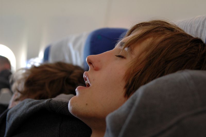 | Описание изображения: | Спящий в самолете |